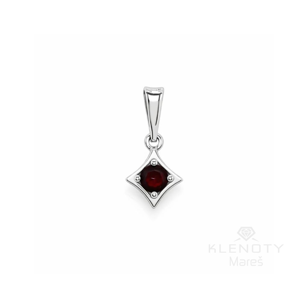 Stříbrný přívěs osázený Českým granátem v motivu čtverce.