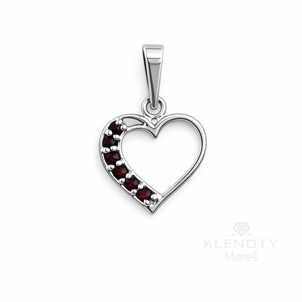 Stříbrný přívěs osázený Českým granátem v motivu srdce.