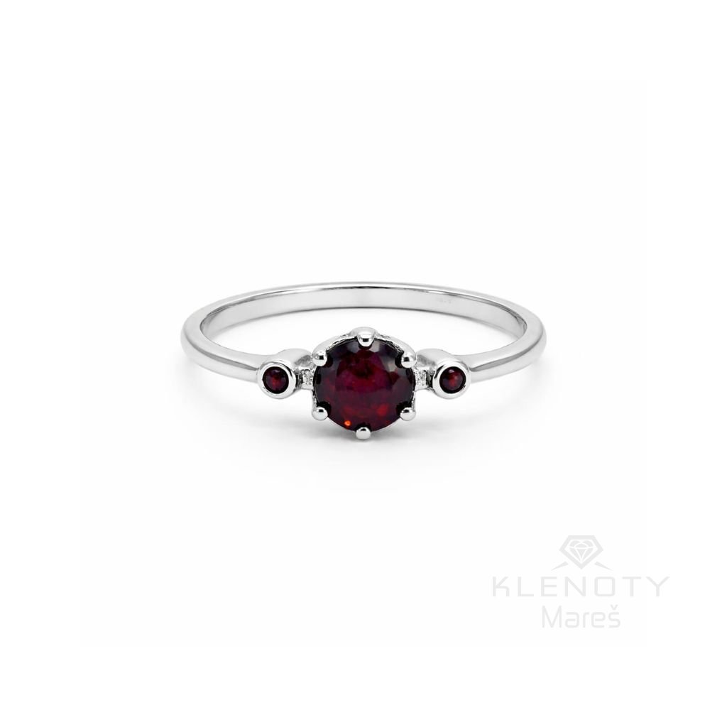 Elegantní stříbrný prsten osázený Českým granátem.