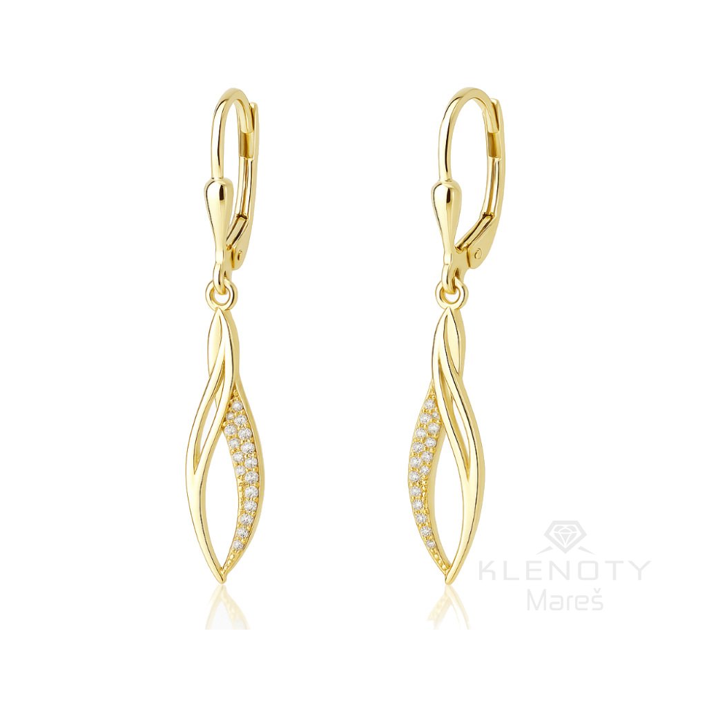 Elegantní visací náušnice ze 14ti karátového zlata ozdobené zirkony.