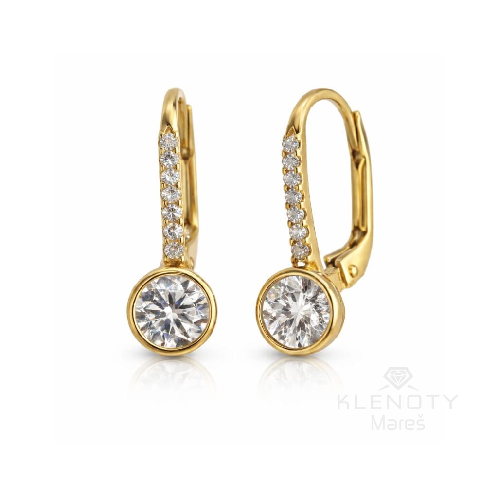Náušnice ze 14ti karátového zlata na klapku zdobené třpytivými zirkony.