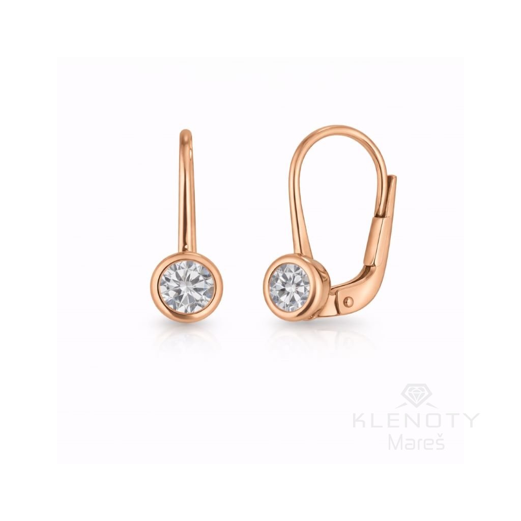 Náušnice ze 14ti karátového růžového zlata na klapku zdobené třpytivým zirkonem.