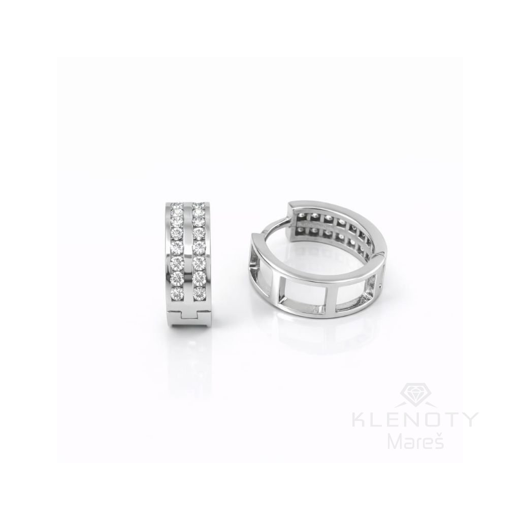 Minimalistické kruhové náušnice ze 14ti karátového bílého zlata zdobené třpytivými zirkony.