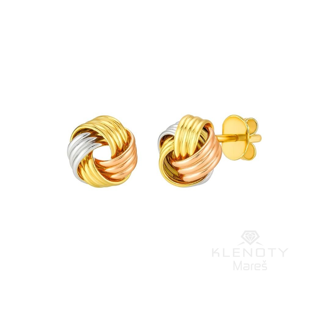 Zlaté náušnice v kombinovaném 14ti karátovém zlatě na puzetové zapínání.