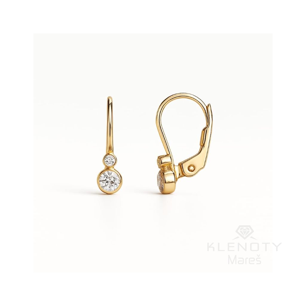 Minimalistické náušnice ze 14ti karátového zlata na klapkové zapínání zdobené zirkony.