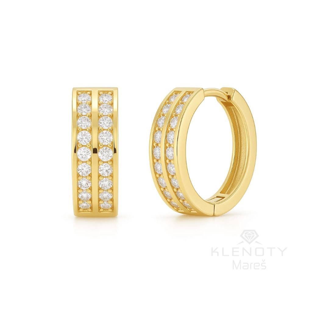 Elegantní náušnice ze 14ti karátového zlata osázené třpytivými zirkony.