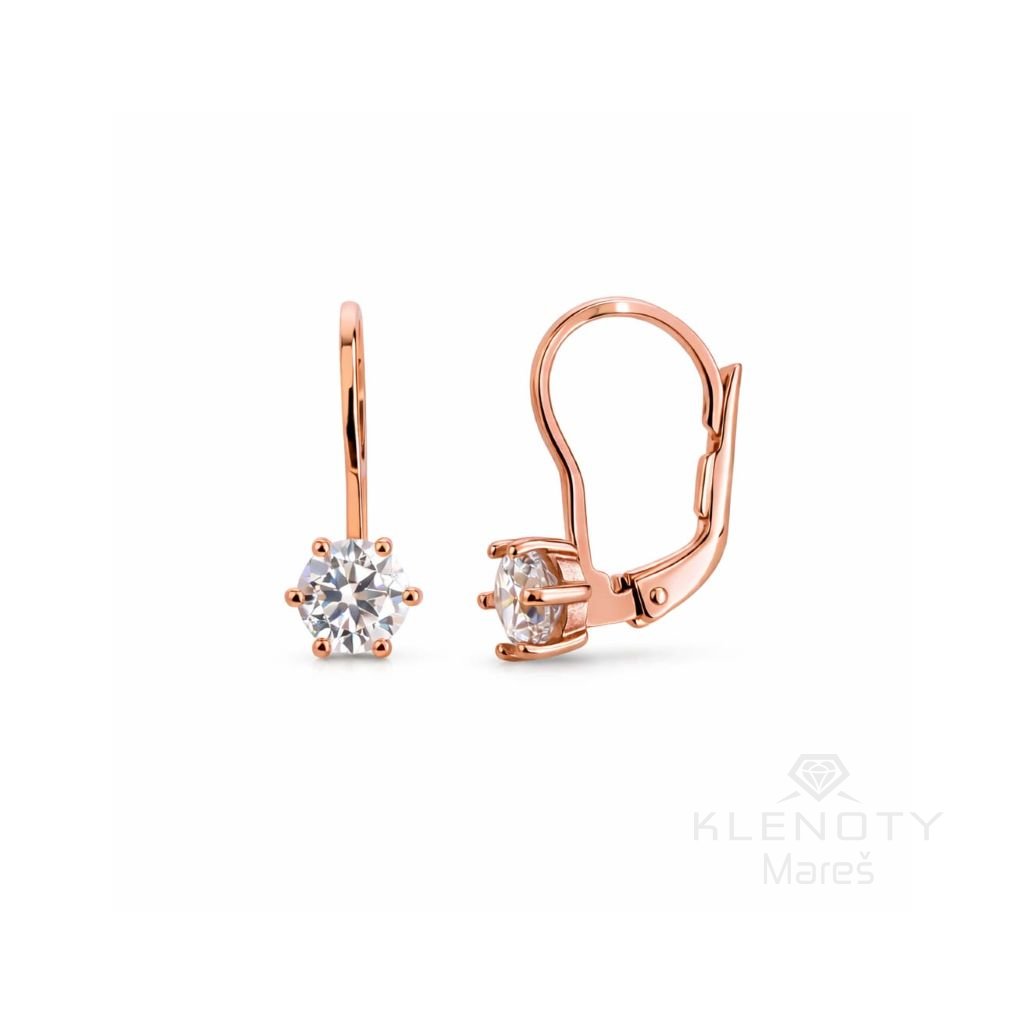 Minimalistické náušnice ze 14ti karátového růžového zlata na klapkové zapínání zdobeným zirkonem.