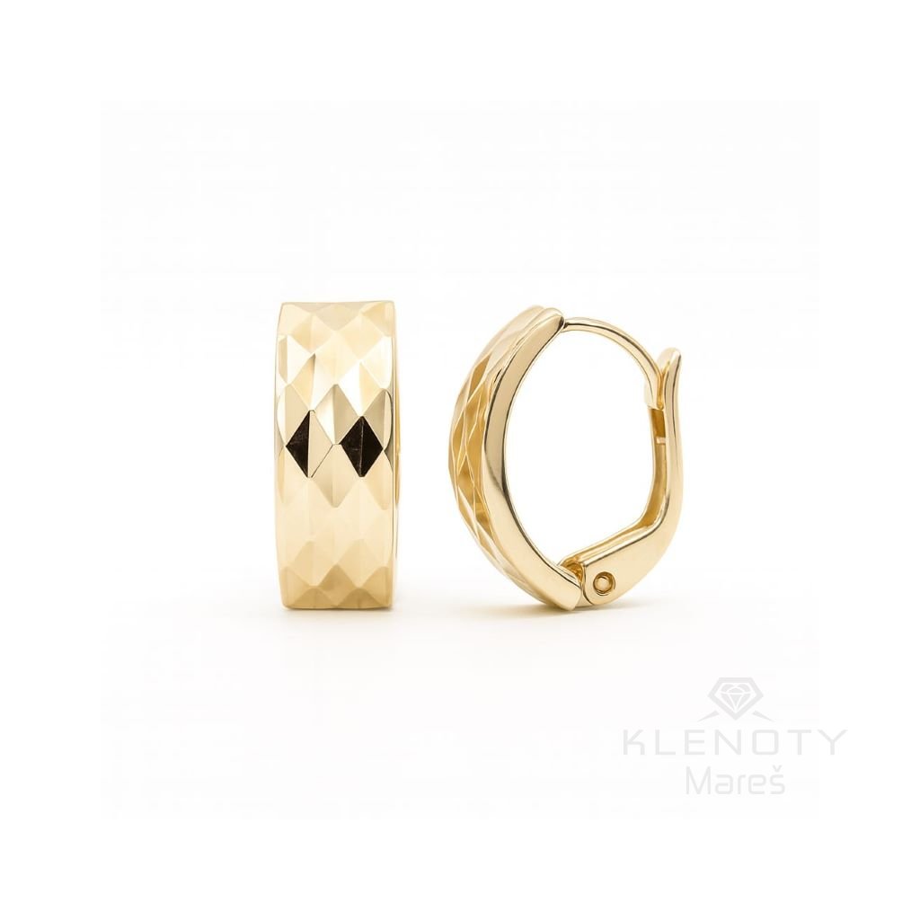 Elegantní náušnice ze 14ti karátového zlata zapínání na klapku zdobené tepáním.