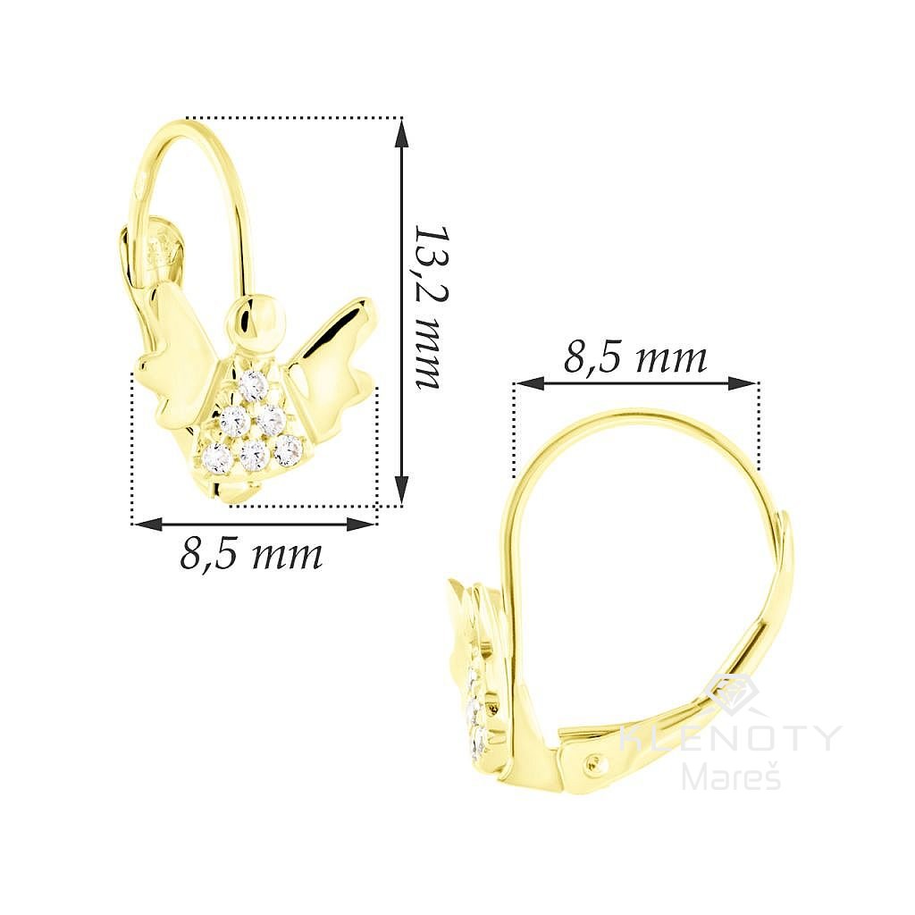 Dětské minimalistické náušnice ze 14ti karátového zlata na klapkové zapínání s motivem anděla.