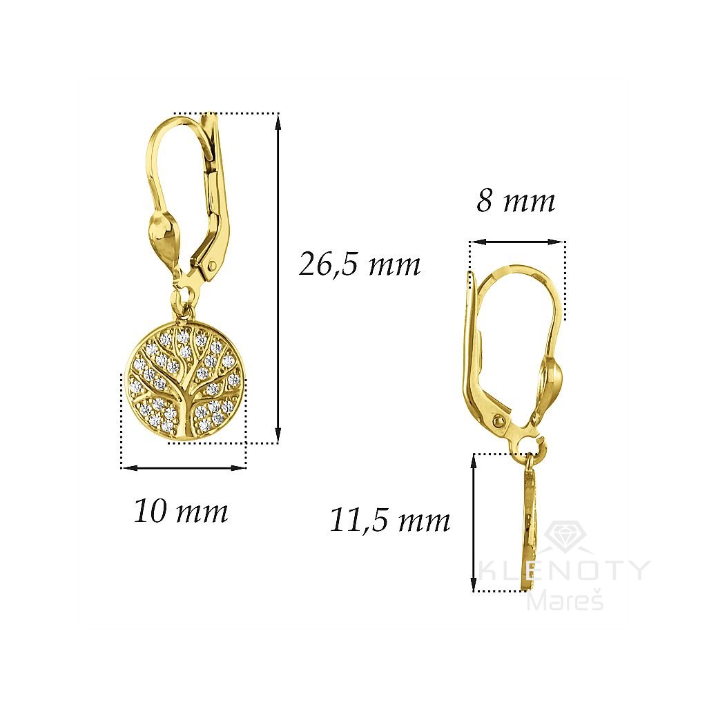 Elegantní náušnice ze 14ti karátového zlata na patentové zapínání s motivem strom života.
