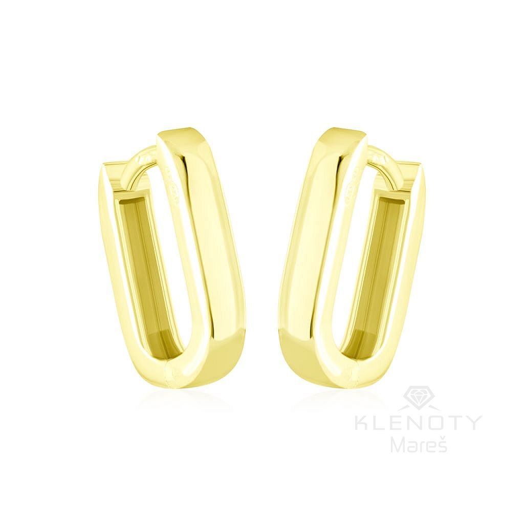 Zlaté minimalistické náušnice ve tvaru obdélníku.