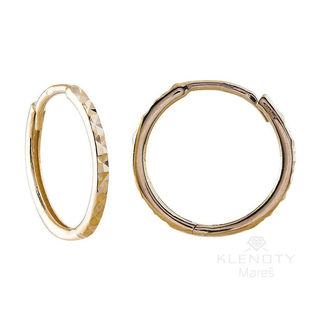 Elegantní kruhové náušnice ze 14ti karátového zlata zdobené brusem.