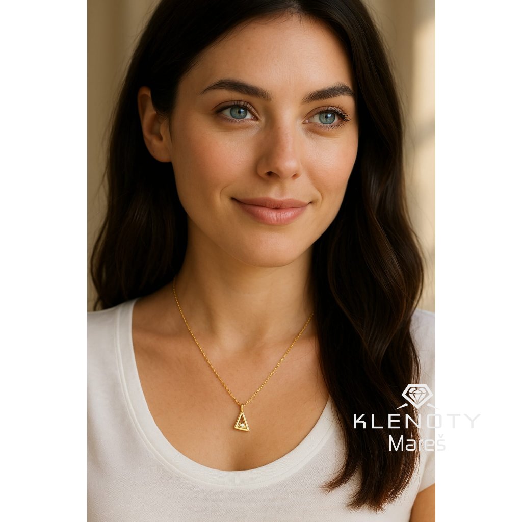 Jemný trojúhelník symbolizuje stabilitu a sílu, zatímco trojice pečlivě usazených zirkonů dodává šperku oslnivý jas při každém pohybu. Dokonalý doplněk pro ženu, která miluje čisté linie a decentní luxus. Díky svému univerzálnímu designu se skvěle hodí k bílé košili do kanceláře i k večerním šatům.
