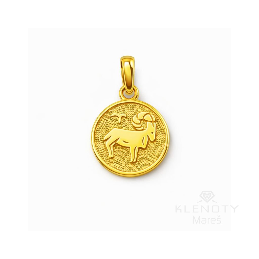 Zlatý minimalistický přívěsek ve znamení BERAN.
