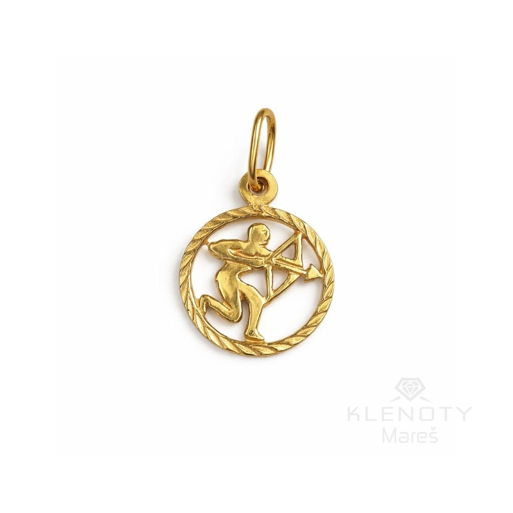 Zlatý minimalistický přívěsek ve znamení STŘELEC.