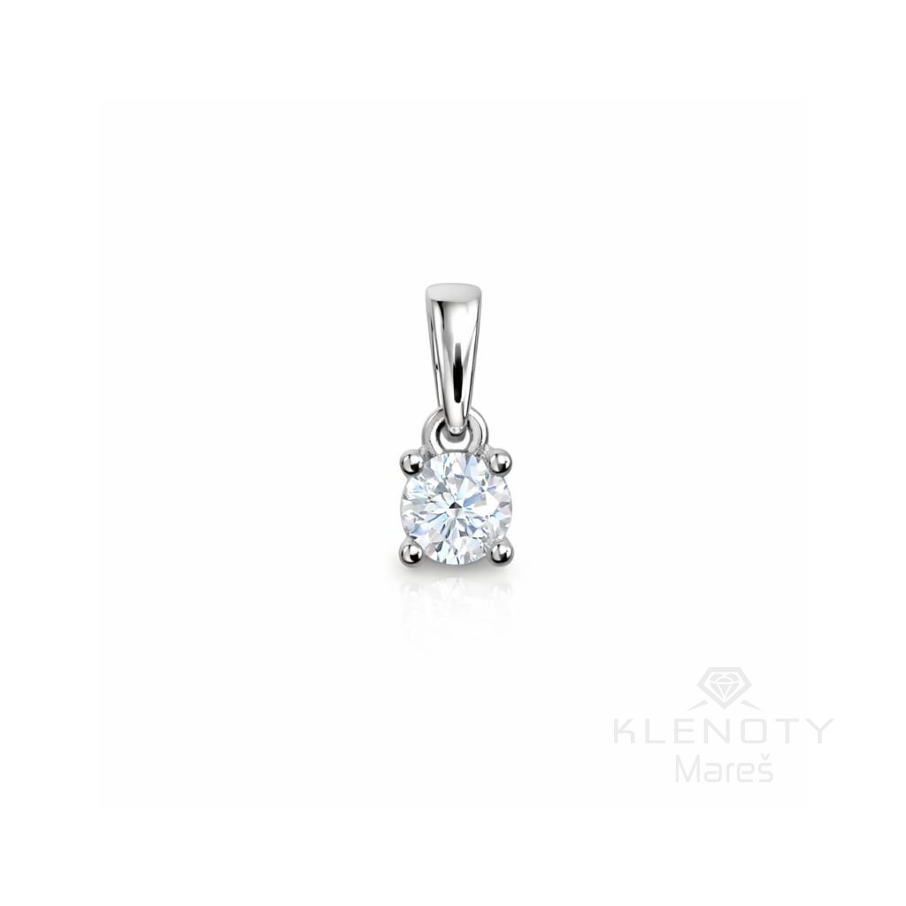 Minimalistický přívěsek ve 14ti karátovém bílého zlata se třpytivým zirkonem.