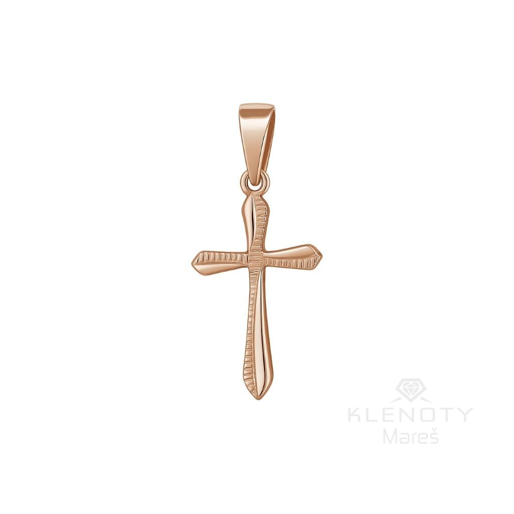 Přívěs ze 14ti karátového zlata zdoben tepováním v motivu kříž.