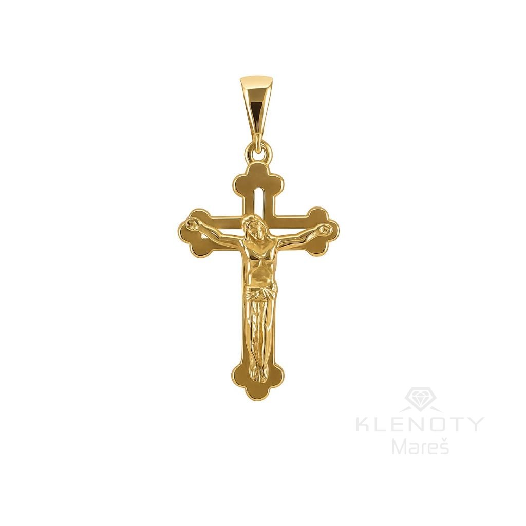 Přívěs ze 14ti karátového zlata v motivu kříž.