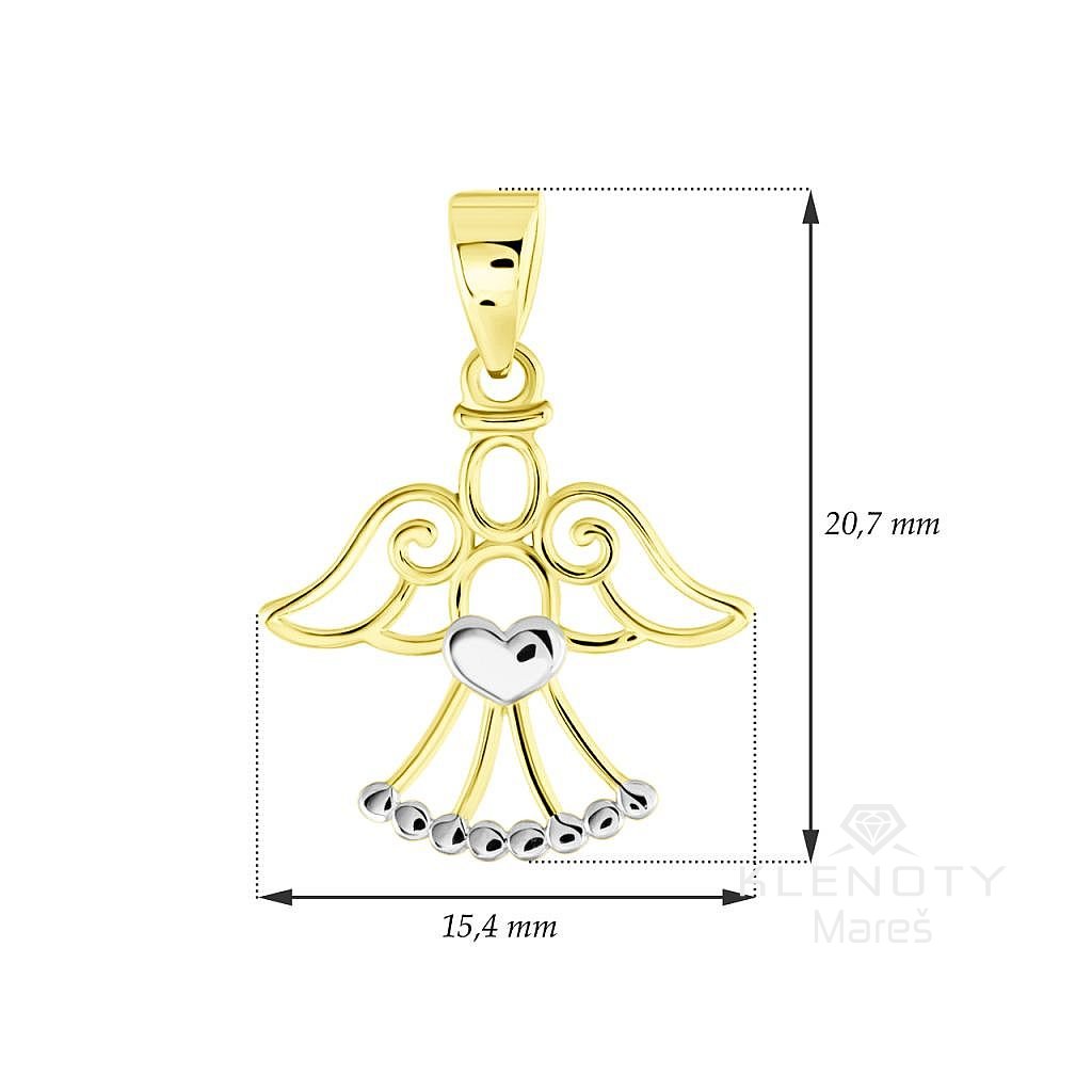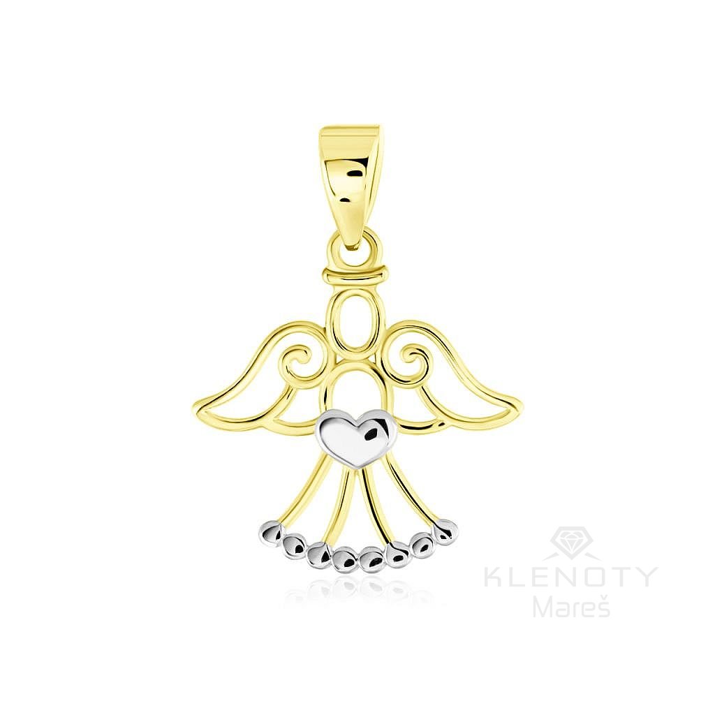 Přívěs v kombinací žlutého a bílého 14ti karátového zlatamotivem andílka.
