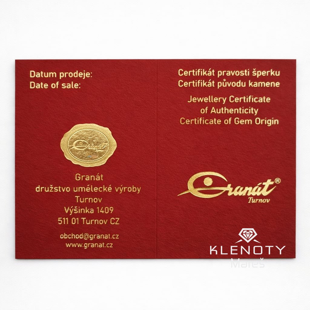 K šperku je přiložen certifikát o pravosti Českého granátu.