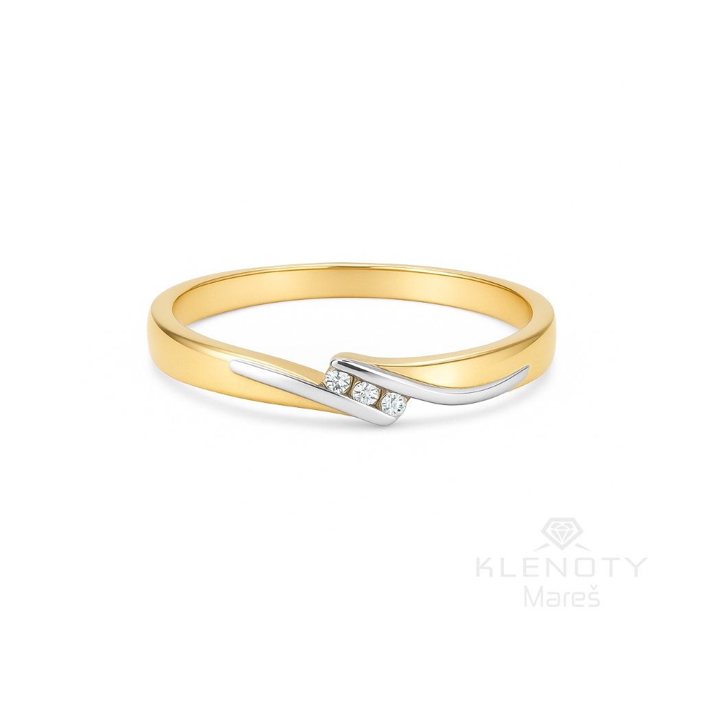 Elegantní prsten ze 14ti karátového kombinovaného zlata zdoben zirkony.