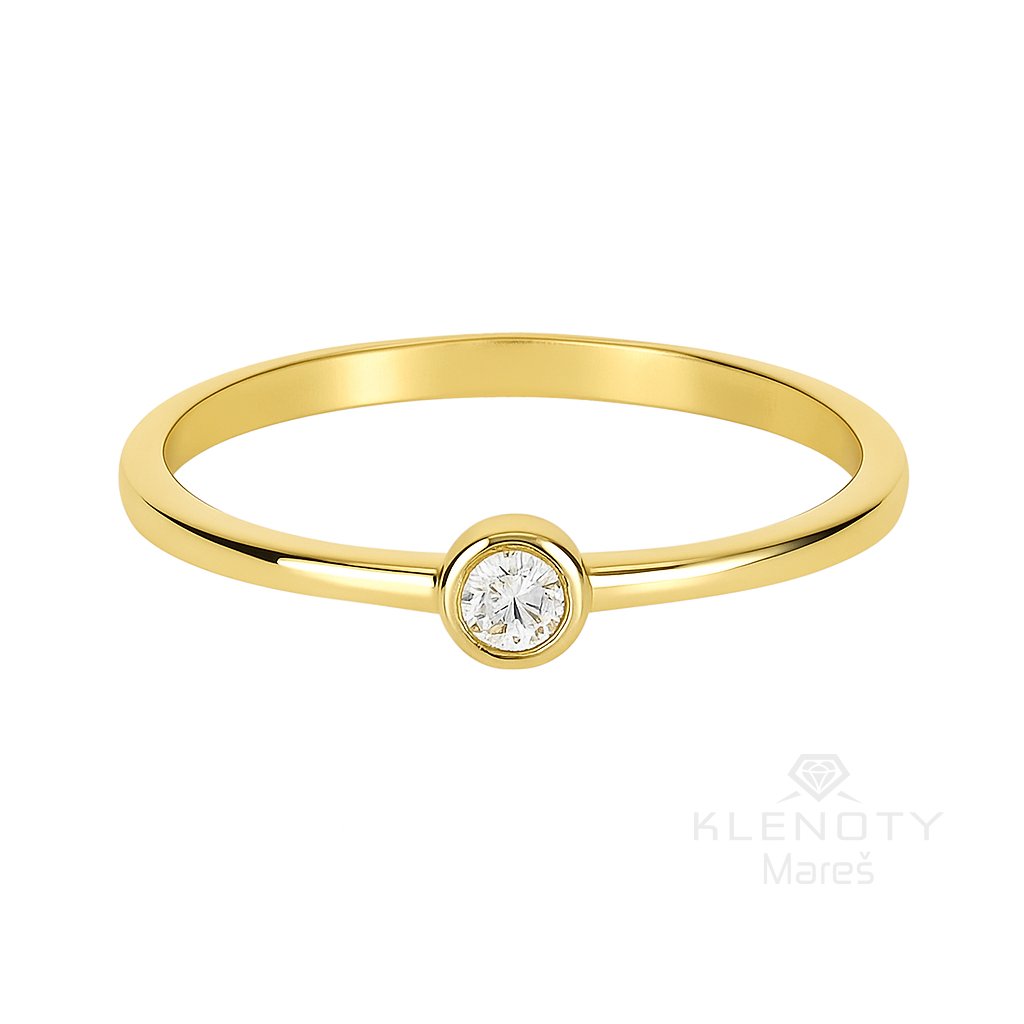 Minimalistický prsten ze 14ti karátového zlata s třpytivým zirkonem.