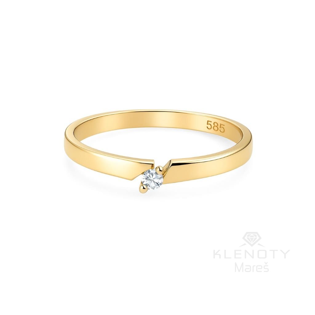 Elegantní prsten ze 14ti karátového zlata se třpytivým briliantem.